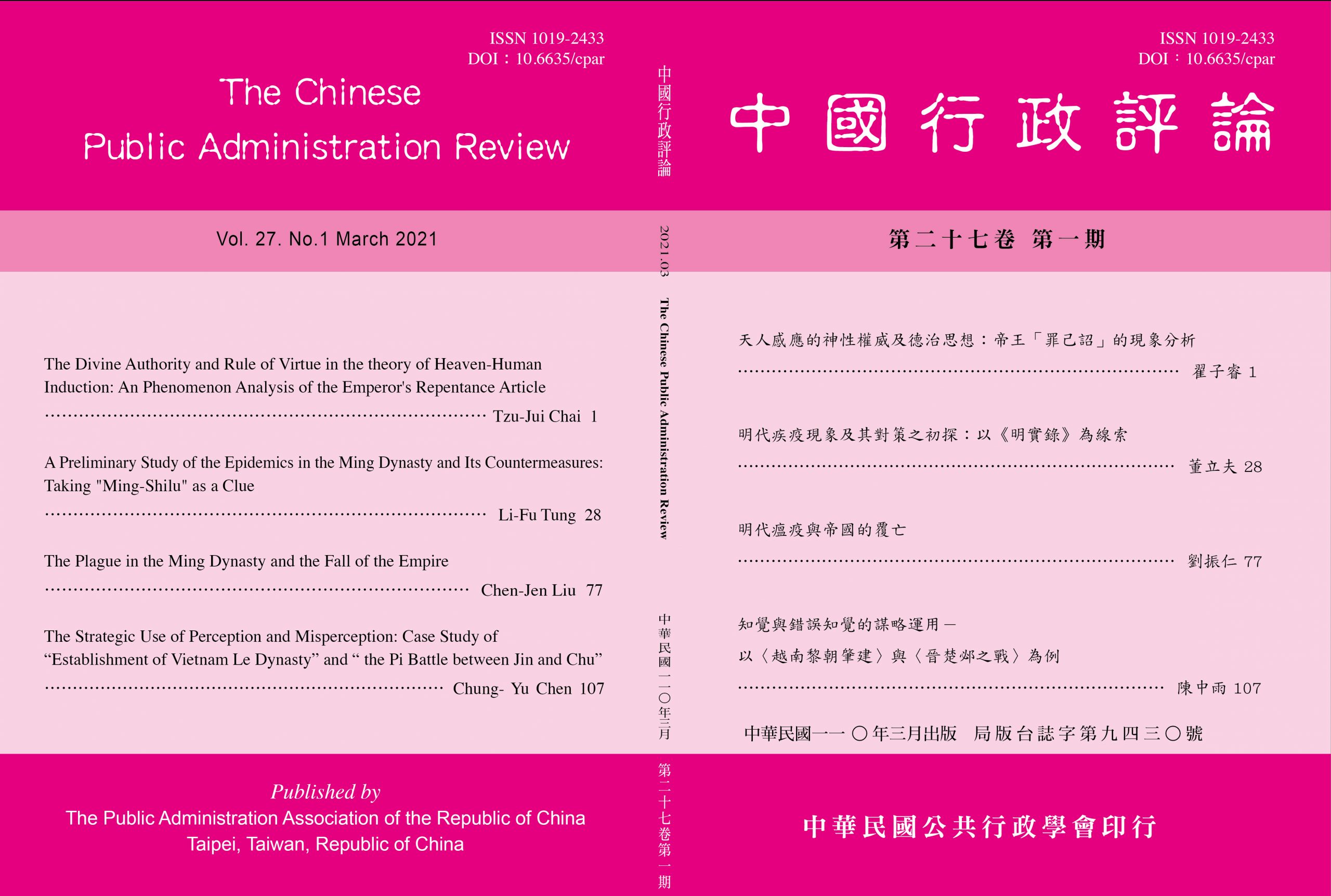 第 27 卷第 1 期 2021 年 3 月 30 日 01天人感應的神性權威及德治思想(翟子睿)下載 02明代疾疫及其對策之初探(董立夫)下載 03明末瘟疫與帝國的覆亡(劉振仁)下載 04知覺與錯誤知覺的謀略運用(陳中雨)下載