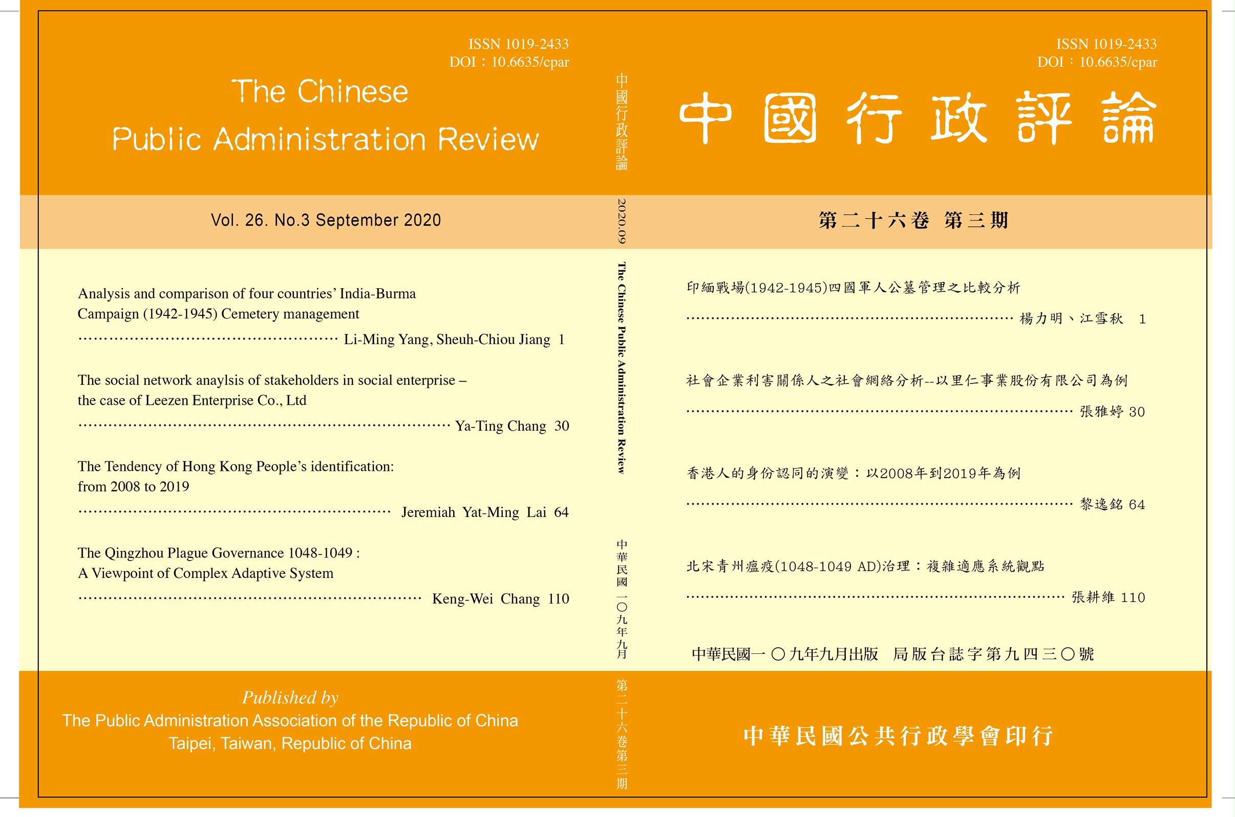 第 26 卷第 3 期 2020 年 12 月 12 日 01印緬戰場(楊力明、江雪秋)下載 02社會企業利害關係人之社會網絡分析(張雅婷)下載 03香港人的身份認同的演變(黎逸銘)下載 04北宋青州瘟疫的治理(張耕維)下載